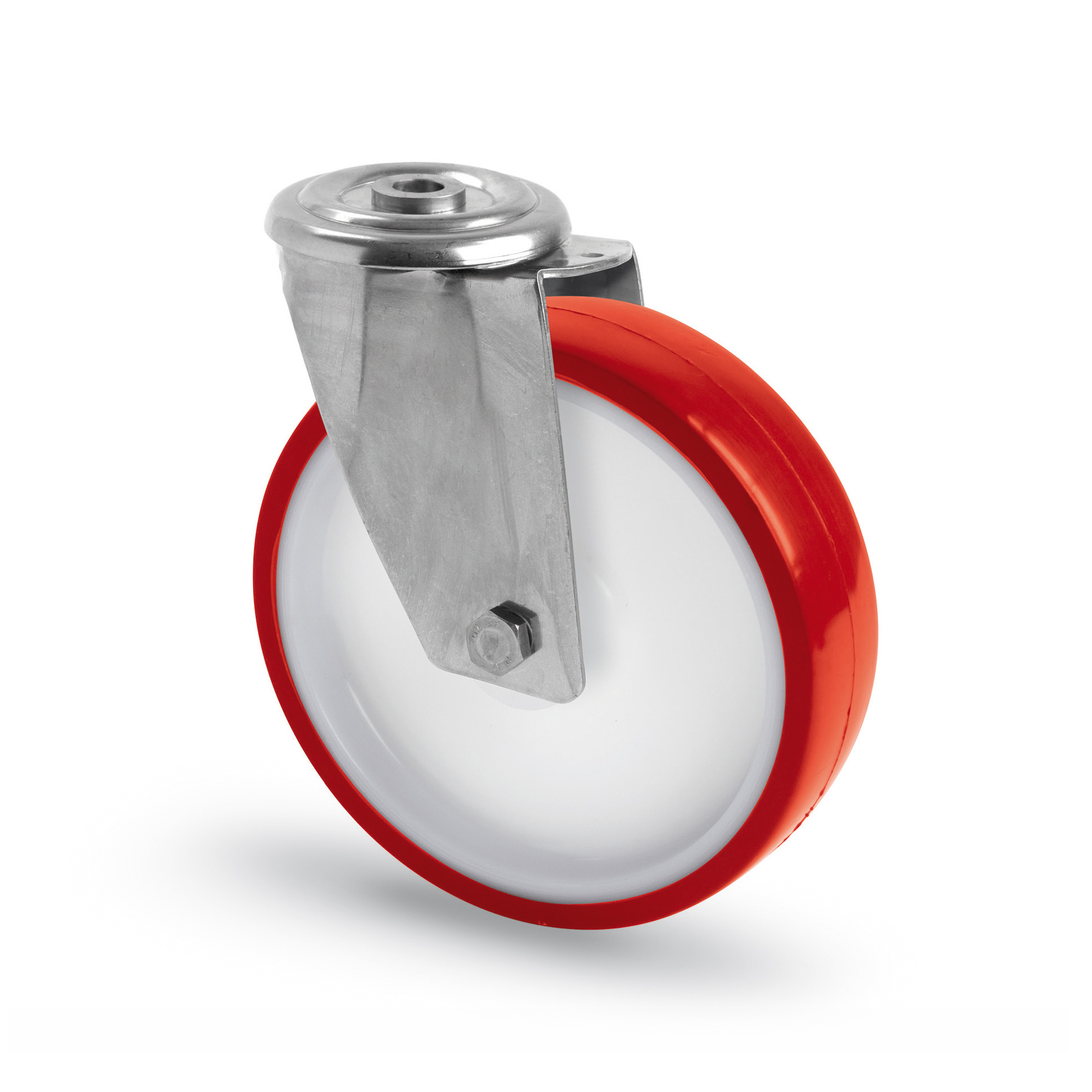 Rad: Spritzgegossenes Polyurethan, mit Polyamid-Radkern, Gleitlager,