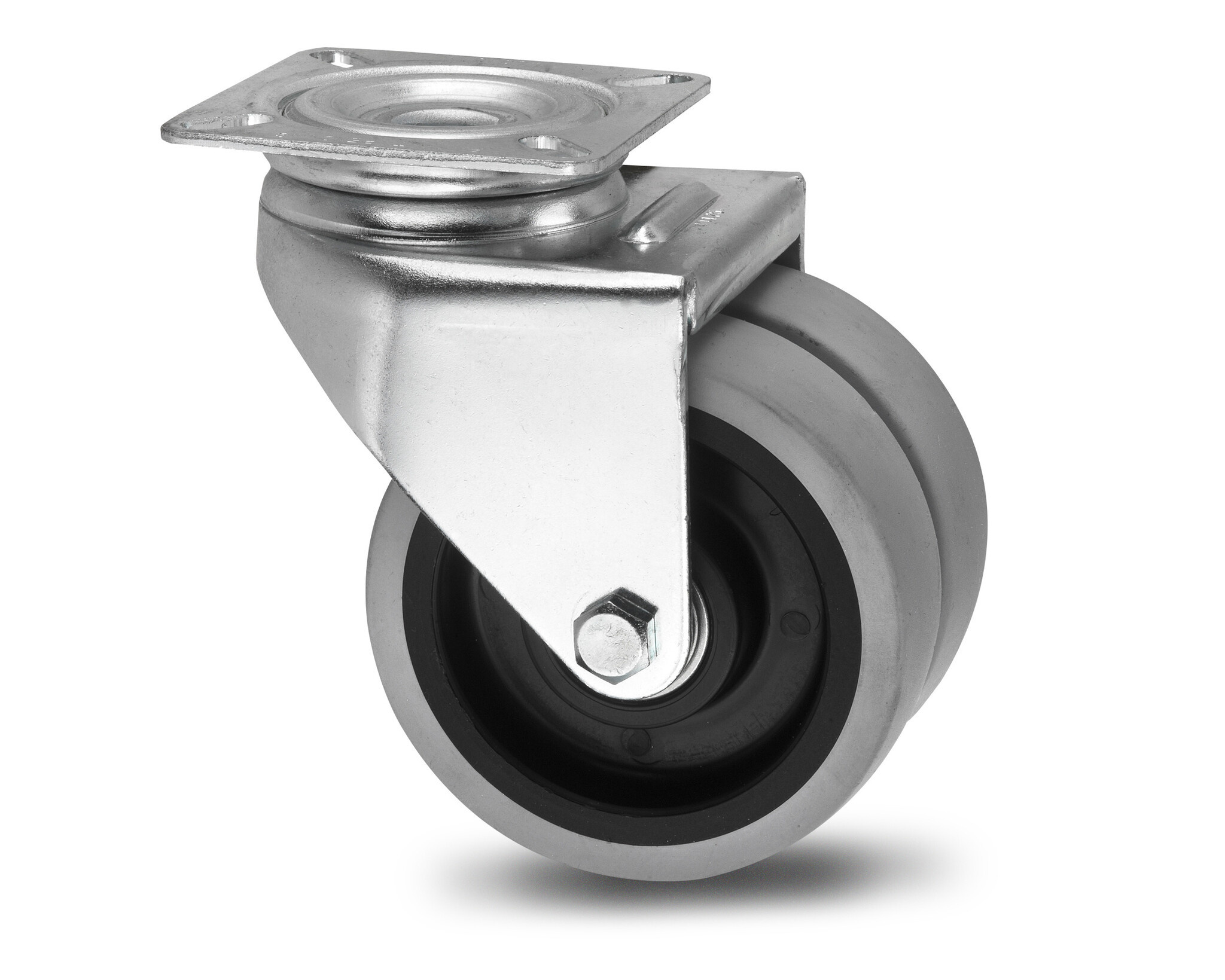 Leichte Lenkrolle aus gepresstem Stahlblech, Plattenbeschlag, grauer, spurloser thermoplastischer Gummireifen, Präzisionskugellager, Rad-Ø 50mm, 80KG