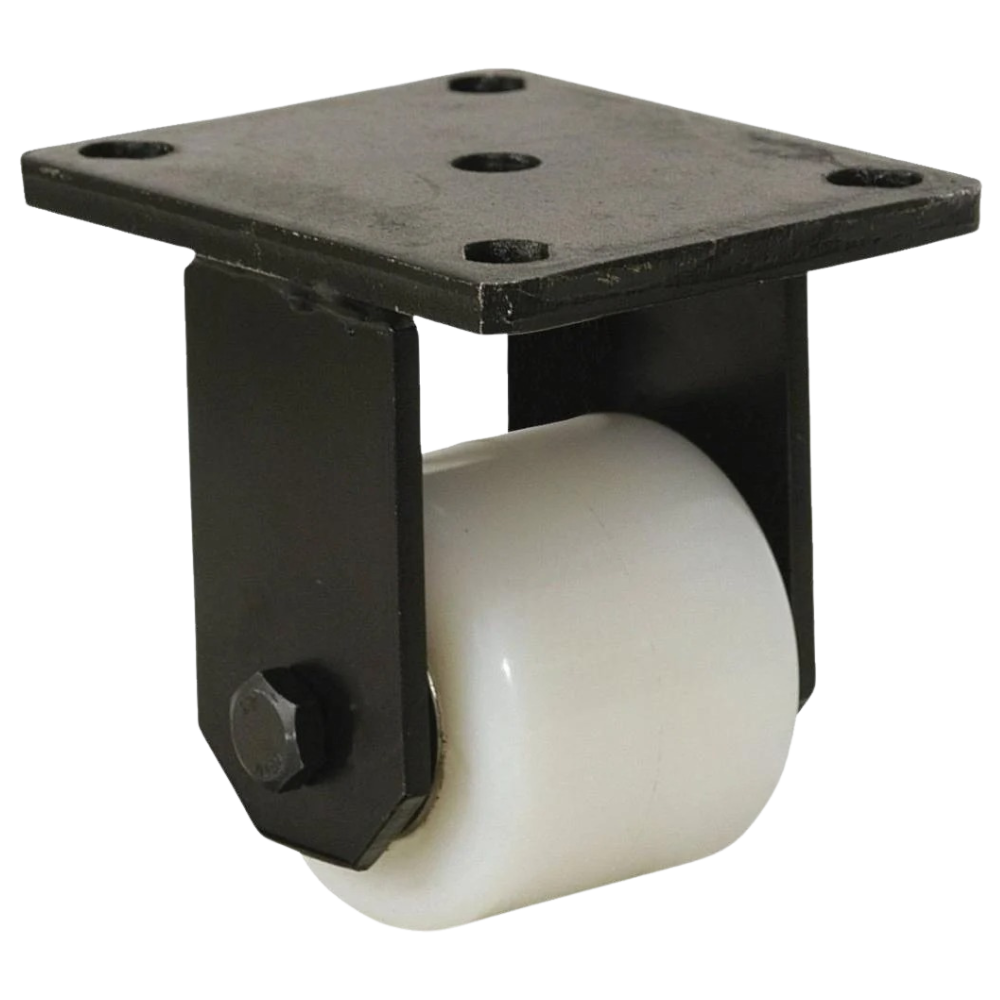 Heavy duty Fixed caster from Welded steel housing, plate fitting, Polyamide wheel, precision ball bearing, Wheel-Ø 82mm, 750KG