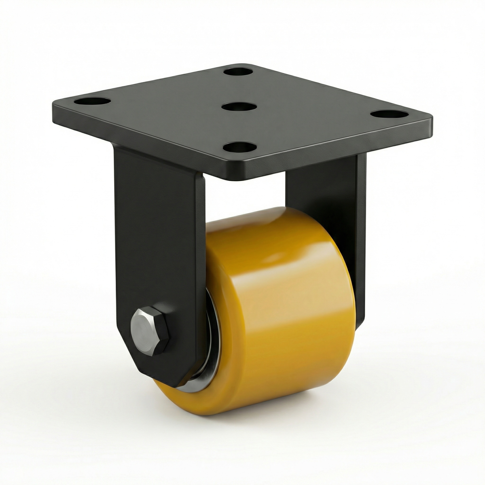 Heavy duty Fixed caster from Welded steel housing, plate fitting, Vulcanized Polyurethane tread, precision ball bearing, Wheel-Ø 85mm, 800KG