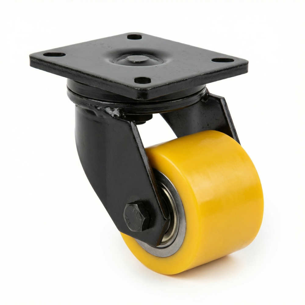 Heavy duty Swivel caster from Welded steel housing, plate fitting, Vulcanized Polyurethane tread, precision ball bearing, Wheel-Ø 85mm, 700KG