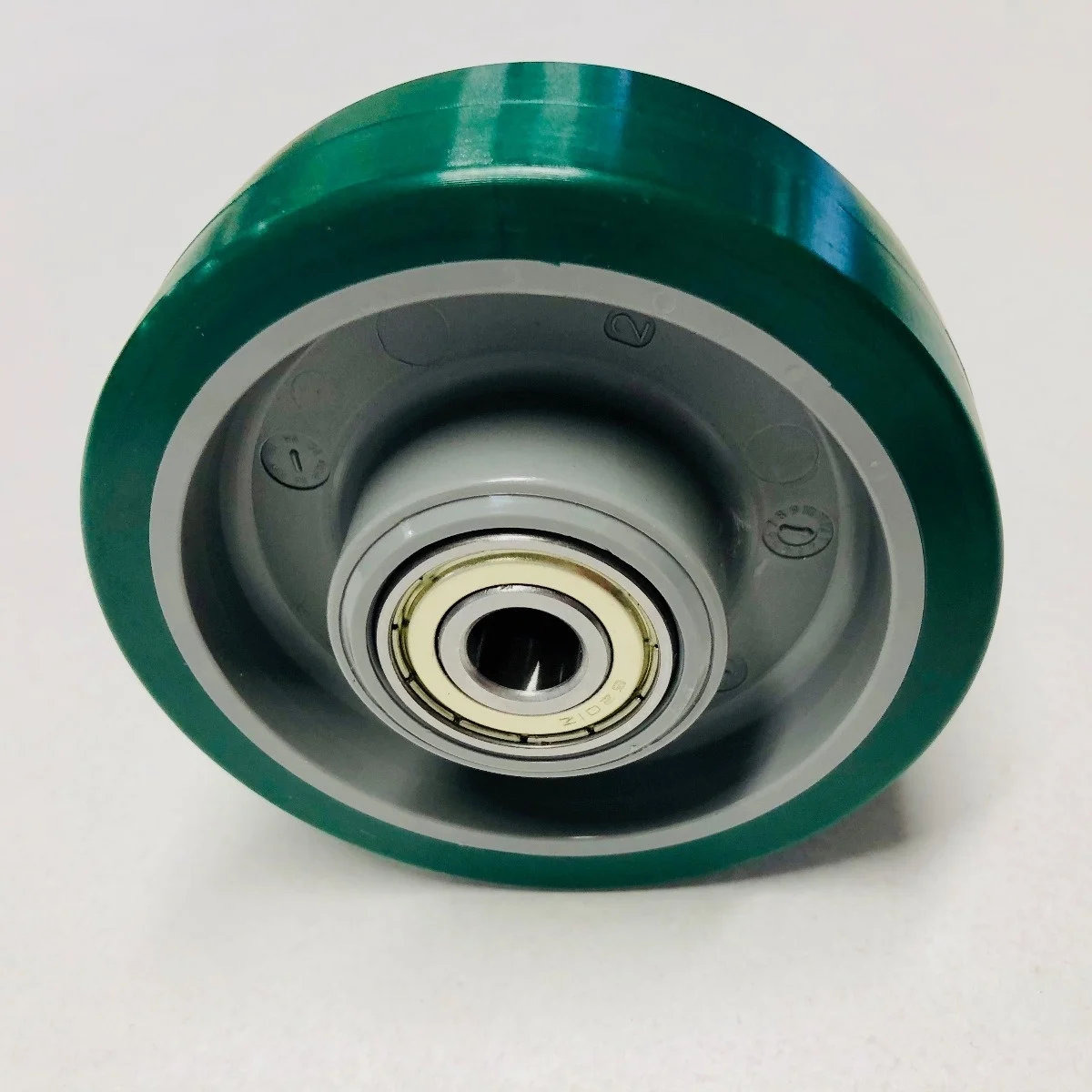 Wheel: Injected polyurethane, with Wheel centre from Polyamide, precision ball bearing, with small threadguards
