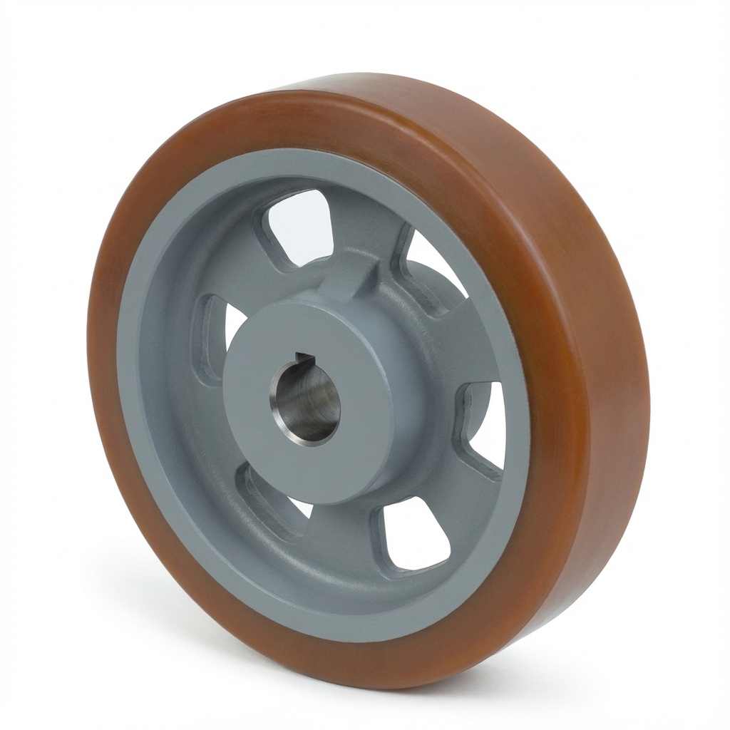 Roue motrice haute résistance Vulkollan® Covestro, bande de roulement en fonte, alésage H7, rainure de clavette DIN 6885 JS9, Ø de roue 100 mm, 1200 kg