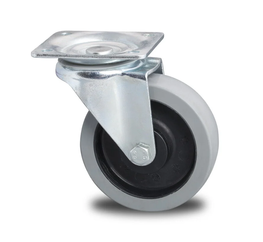 Zestawy kołowe transportowe Wzmocniona Widelec Zestaw obrotowy Tłoczone twardej stali, płytka mocująca, elastycznej gumy, łożysko rolkowe, Koło-Ø 125mm, 200KG