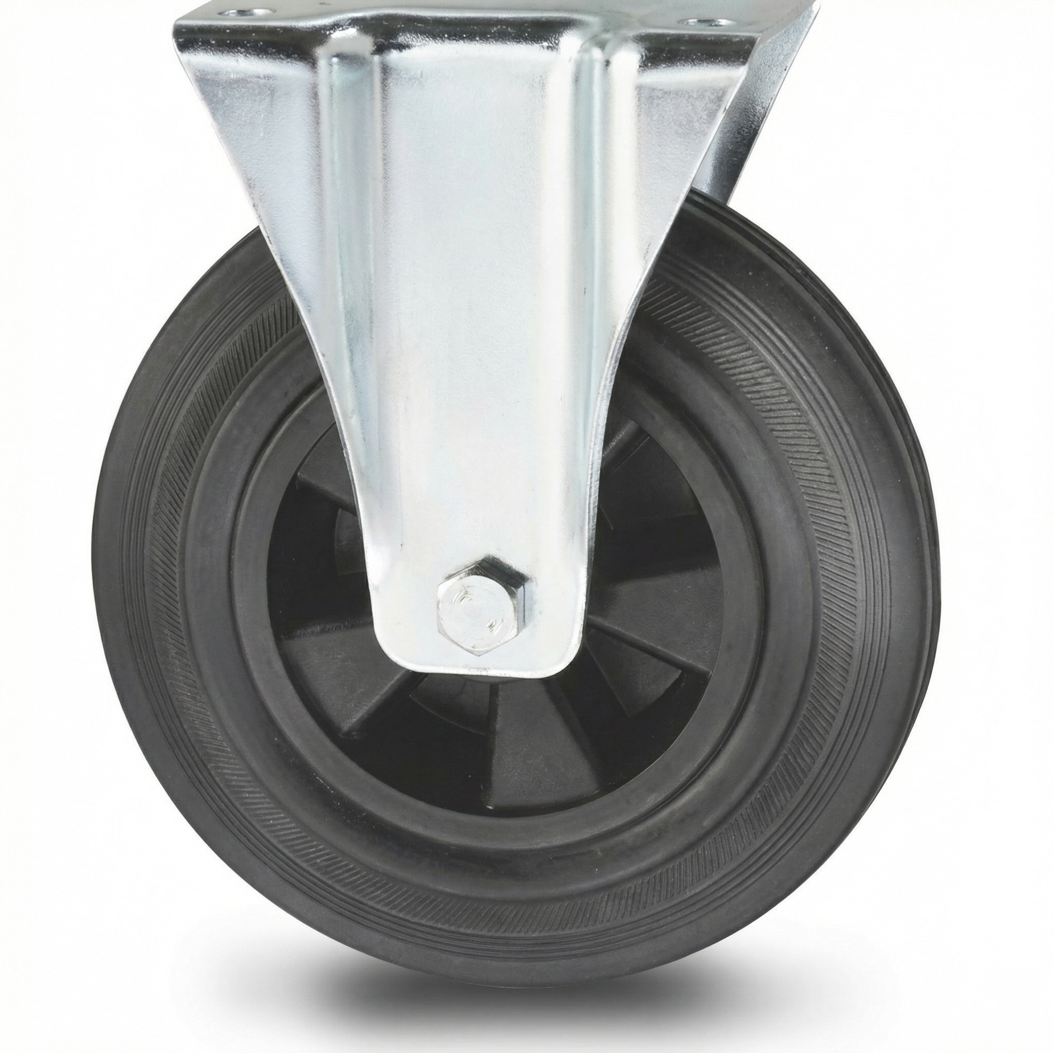 Zestawy kołowe transportowe Zestaw stały tłoczonej blachy stalowej, płytka mocująca, czarnej gumy, łożysko rolkowe, Koło-Ø 160mm, 180KG