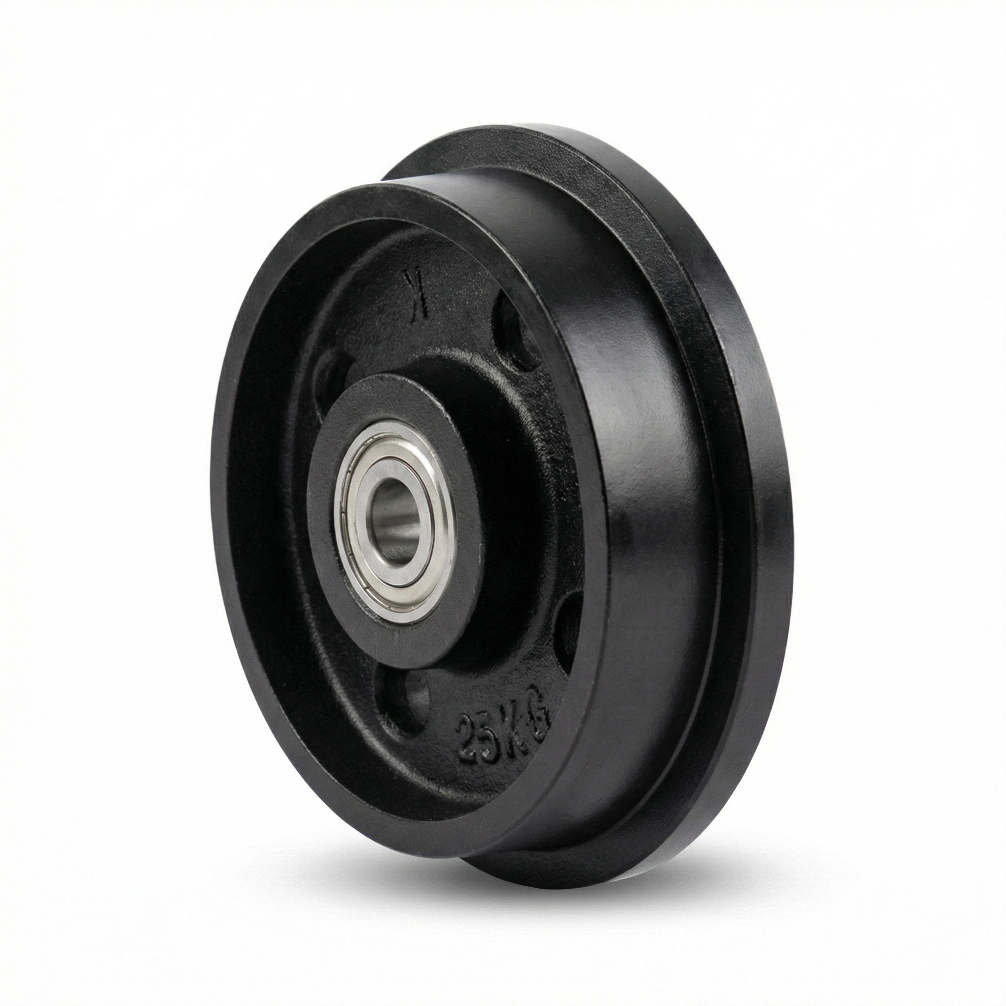 Rolo de esteira e roda flangeada de ferro fundido, rolamento de esferas de precisão, roda-Ø 100mm, 800KG