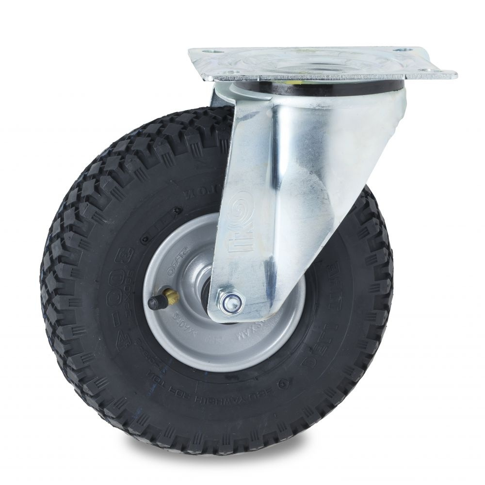industrihjul med luftdäck 3.00-4 (Ø260mm) 4ply rating(PR) och blockprofil, 150KG<br>Tillverkat av pressat stål, montering på topplatta, rullager,